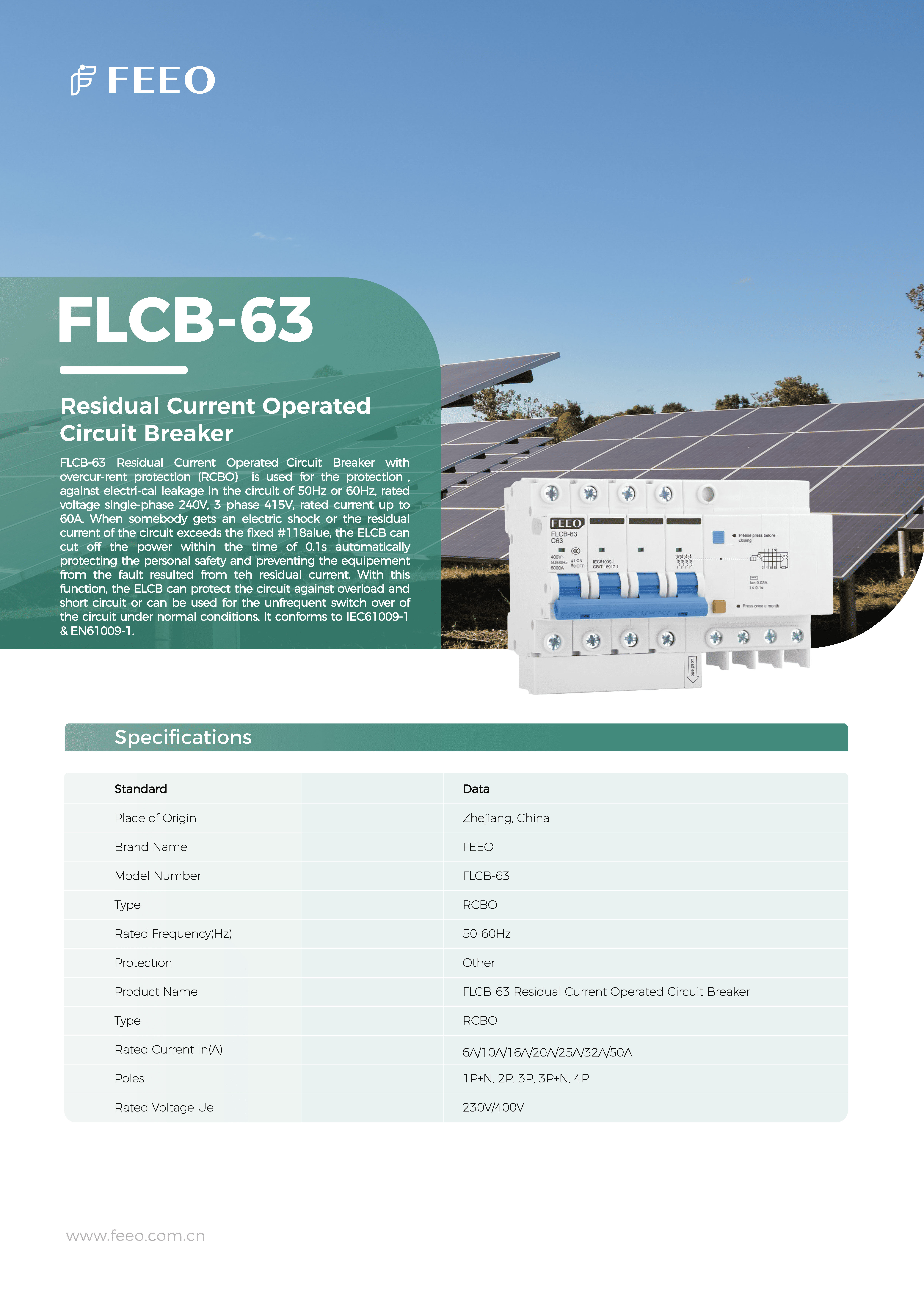 AC Breaker RCBO 4P 400V (FLCB-63)