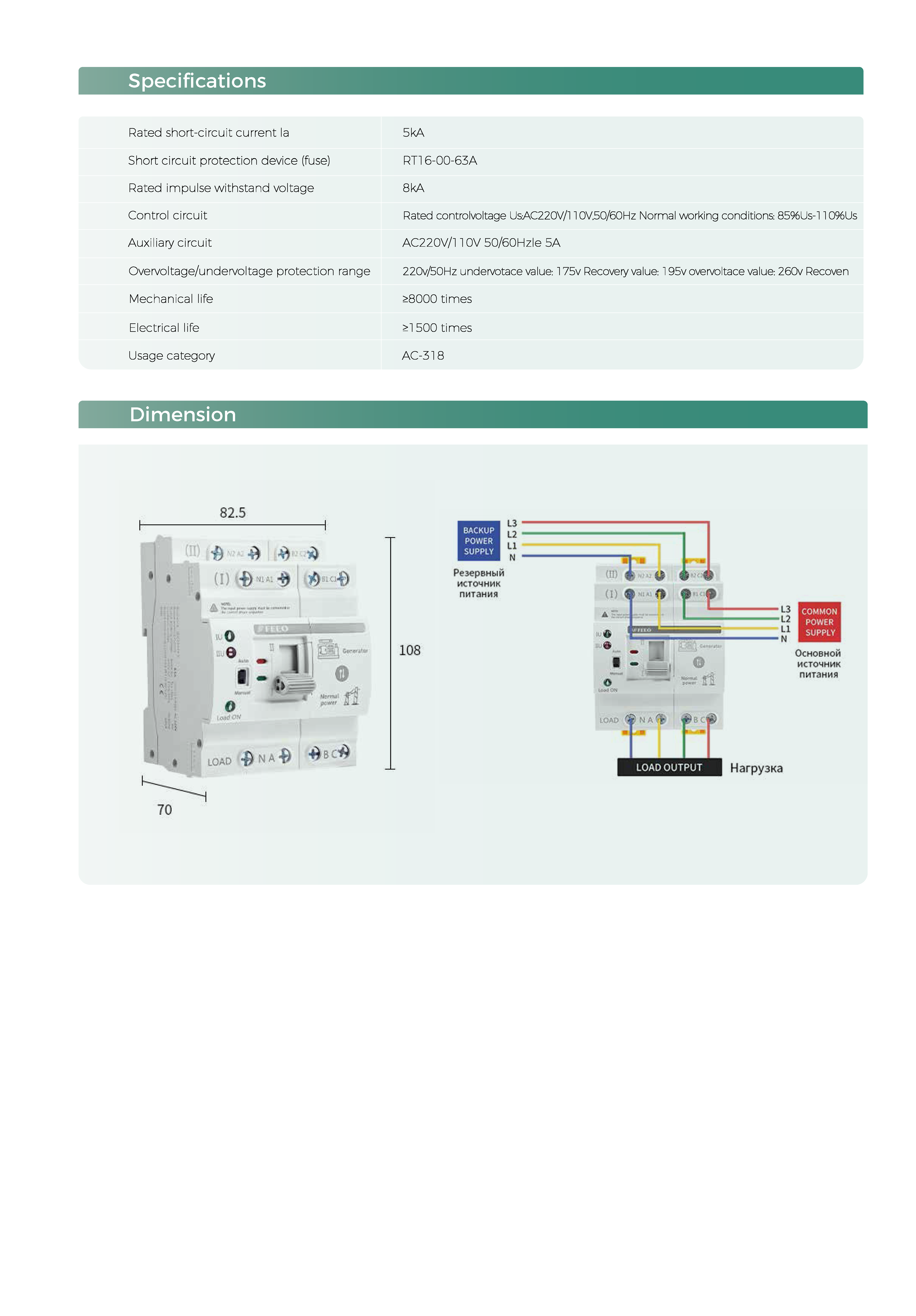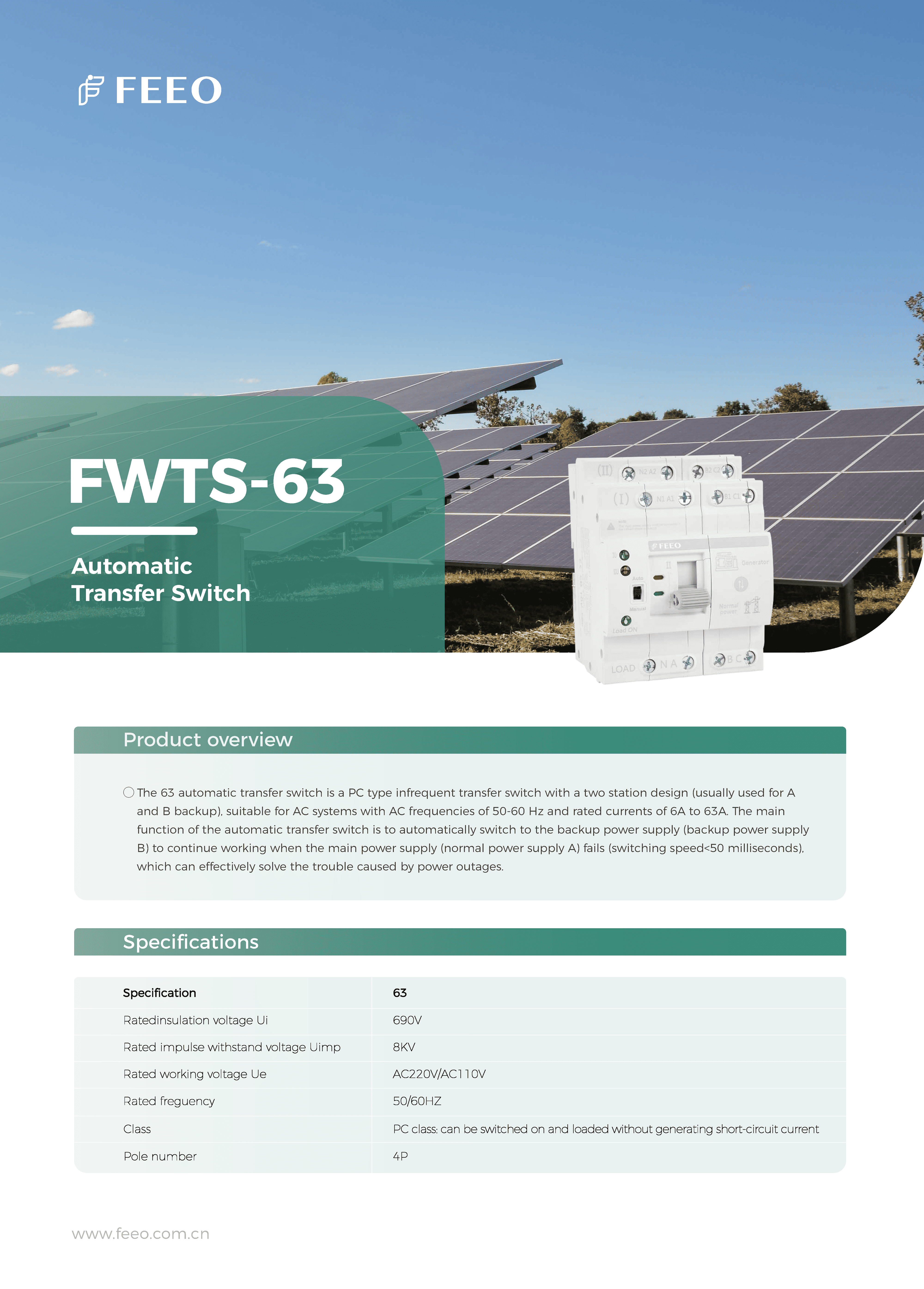 Automatic Transfer Switch (ATS) 2P, 4P 63A 230/400VAC (FWTS-63)